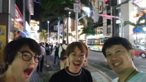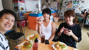 黒いTシャツの子が沖縄出身で、おすすめのタコライスのお店(タコス屋)で食事。