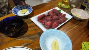 他のメニューは、ヤギ刺し1400円。この2種類だけ。(ヤギ刺しは、馬刺しに似ている)