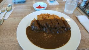 空港で、あぐー豚のカツカレーを注文。柔らかくて美味しい。